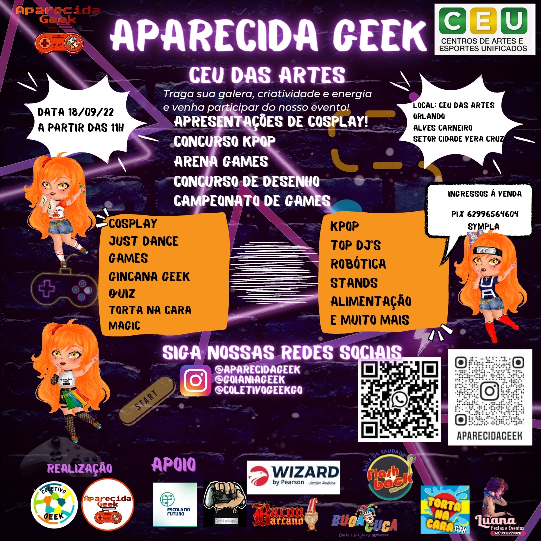 Para maiores informações, então acompanhe o Instagram oficial da organização do evento: Aparecida Geek (@aparecidageek)