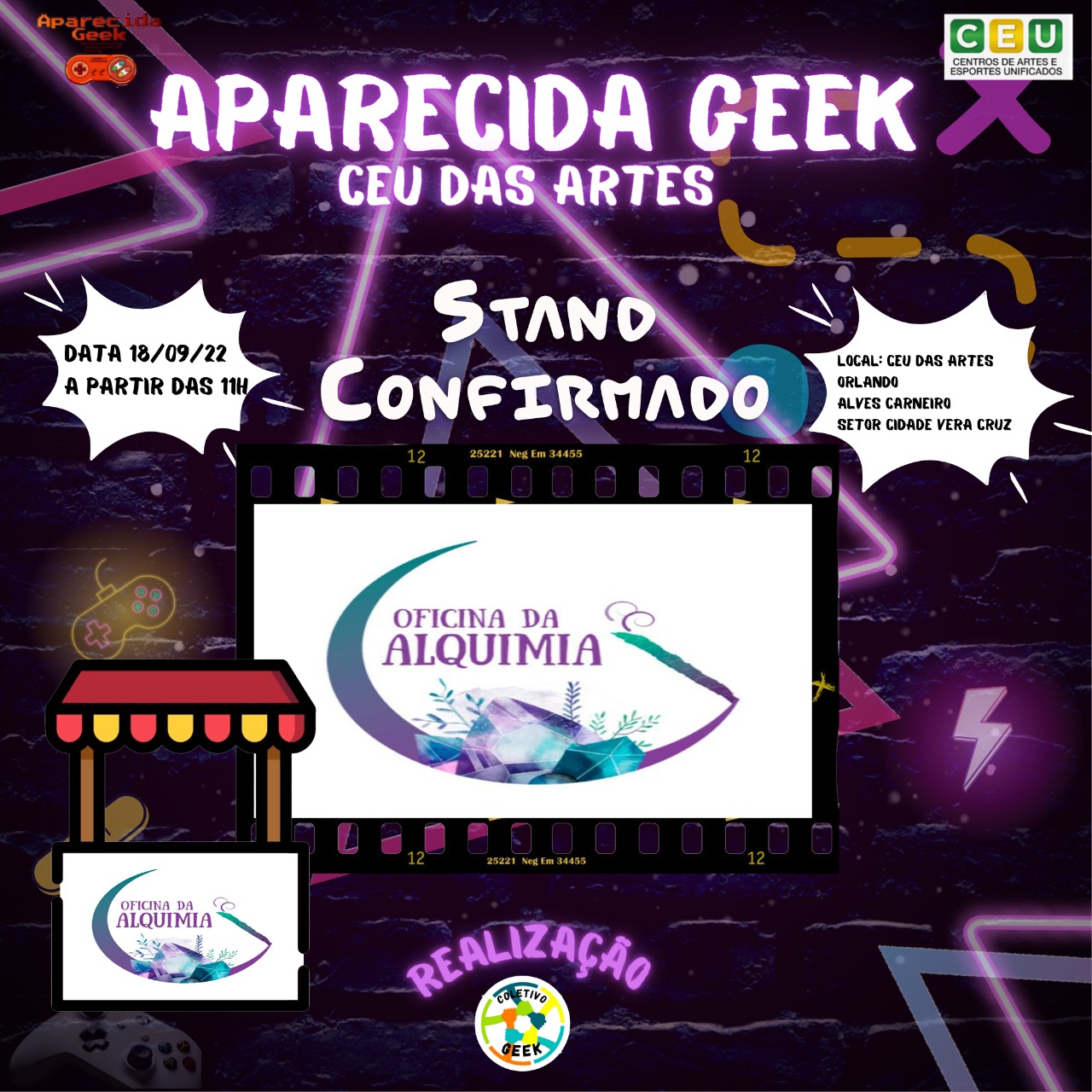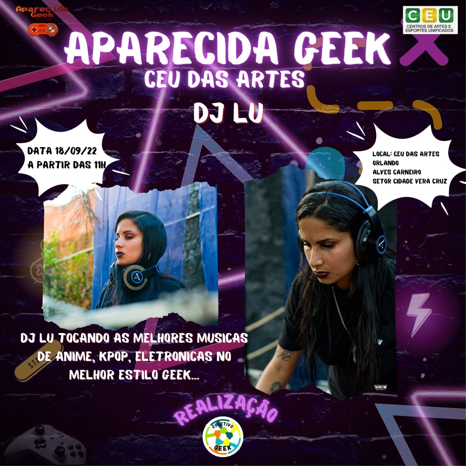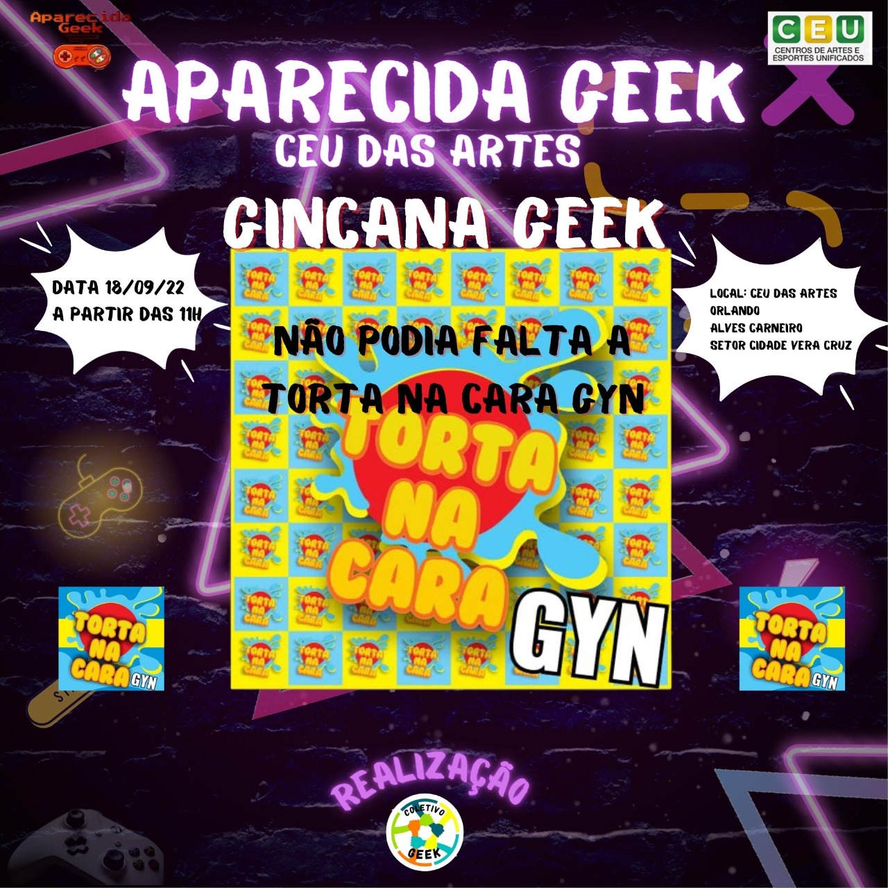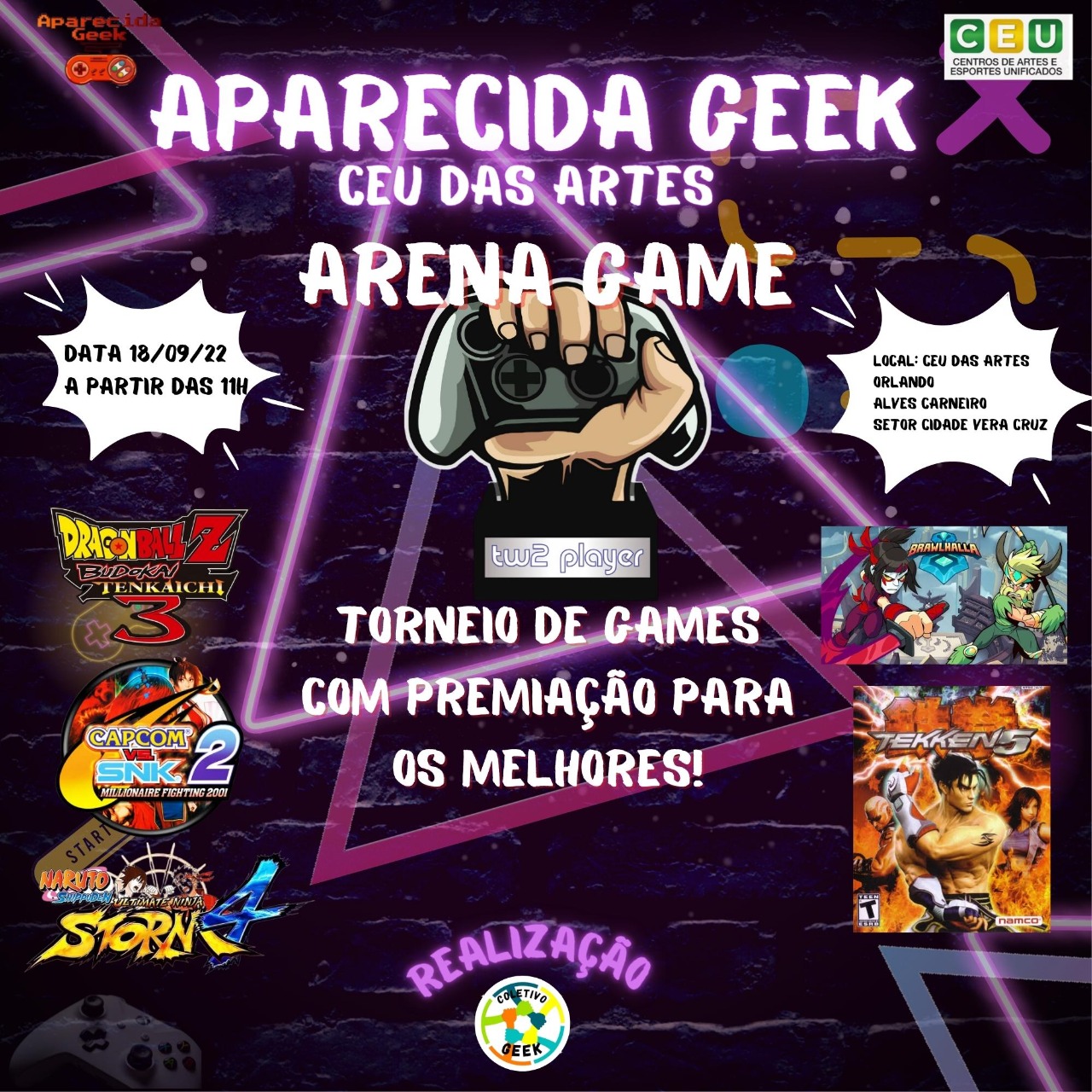 Venha se divertir no próximo evento e traga sua família e seus amigos para se divertirem com você! Afinal de contas, Aparecida Geek Especial CEU das Artes ocorrerá em 18 de setembro de 2022! É diversão garantida para aproveitarmos! Descrição do evento CEU das artes Orlando Alves Carneiro em Aparecida de Goiânia:
