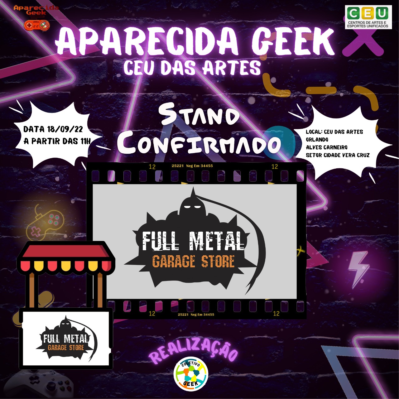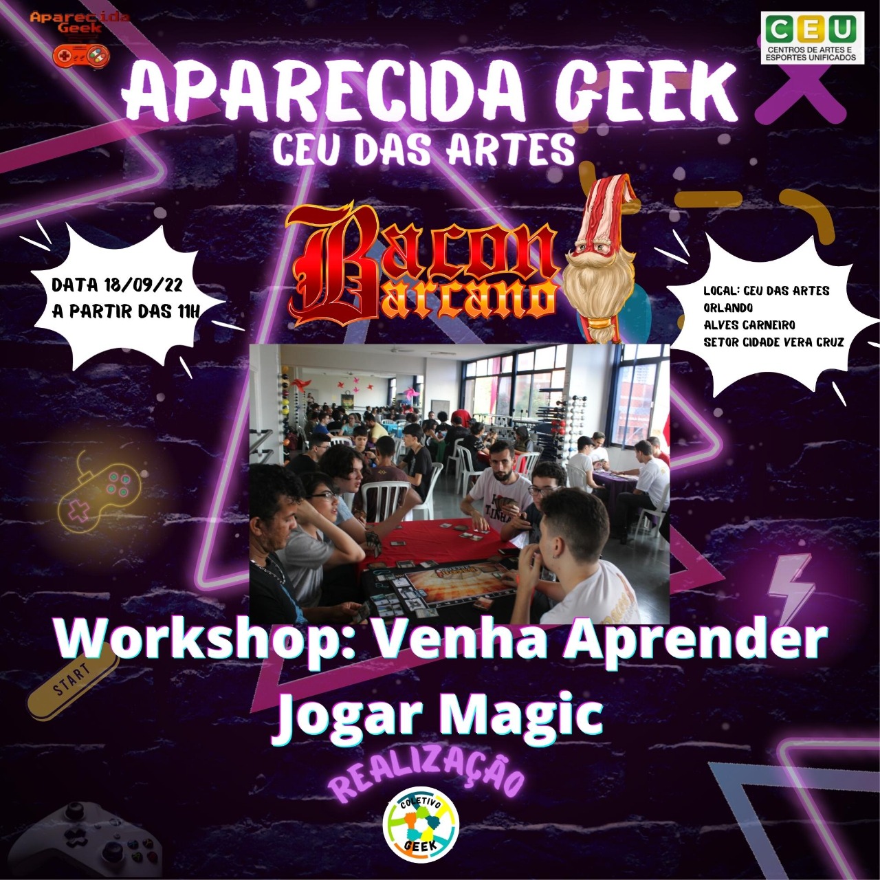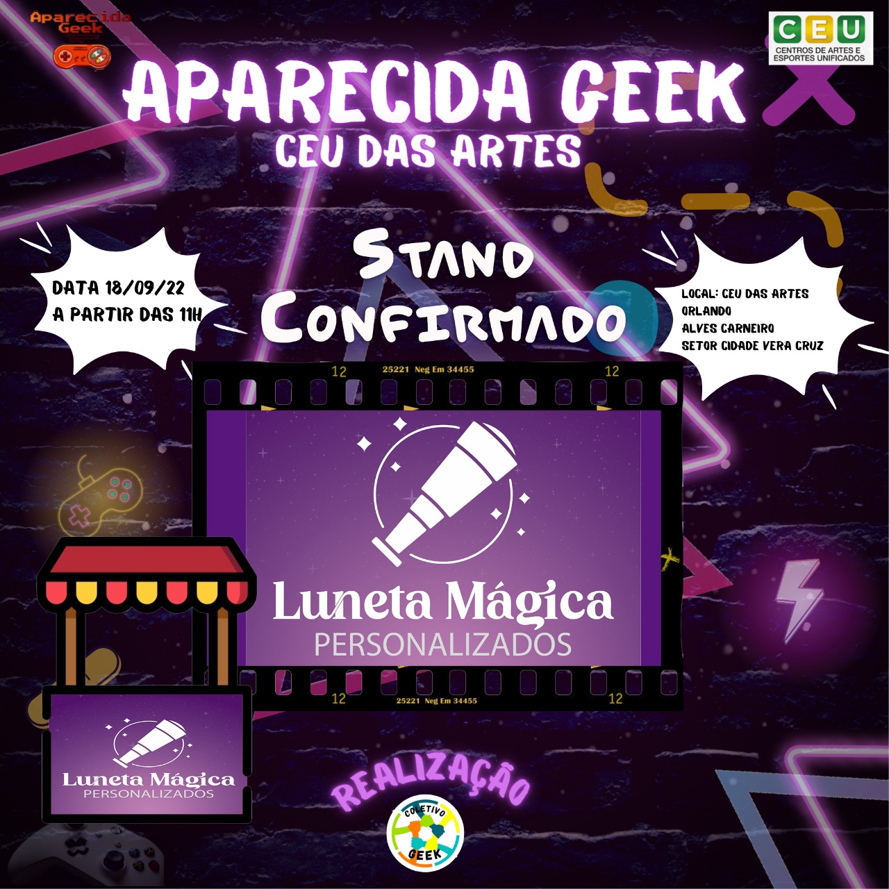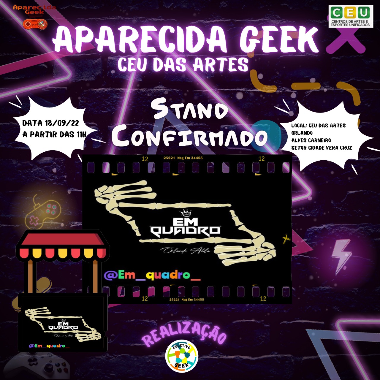 Venha se divertir no próximo evento e traga sua família e seus amigos para se divertirem com você! Afinal de contas, Aparecida Geek Especial CEU das Artes ocorrerá em 18 de setembro de 2022! É diversão garantida para aproveitarmos! Descrição do evento CEU das artes Orlando Alves Carneiro em Aparecida de Goiânia: