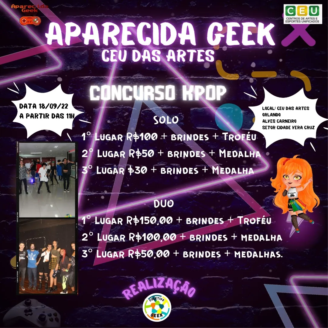 - Um dia incrível com Just Dance, Games, Random Dance, Concurso Kpop, Gincana, Desfile Cosplay, Concurso de Desenho e muito mais.